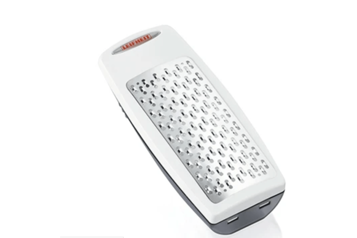 Оснащена съемным боксом для сбора натертого сыра, который можно использовать в качестве дозатора, сохраняя форму продукта и облегчая его дальнейшее использование. Цельная конструкция делает терку компактной, надежной и эргономичной, идеально подходит для пасты, пиццы, салатов и других блюд.