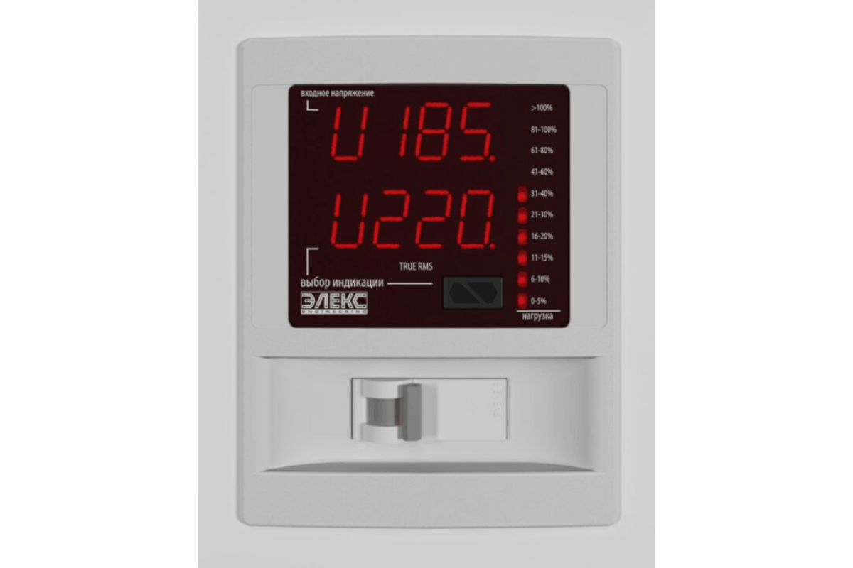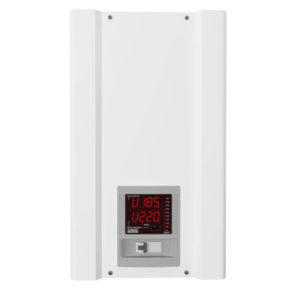 К особенностям данного стабилизатора можно отнести двойной светодиодный экран, линейную полосу загрузки, наличие электронного транзита (байпас), удобное расположение клеммной колодки для подключения на задней части корпуса, бесшумную работу за счет использования в качестве силовых ключей тиристоров.