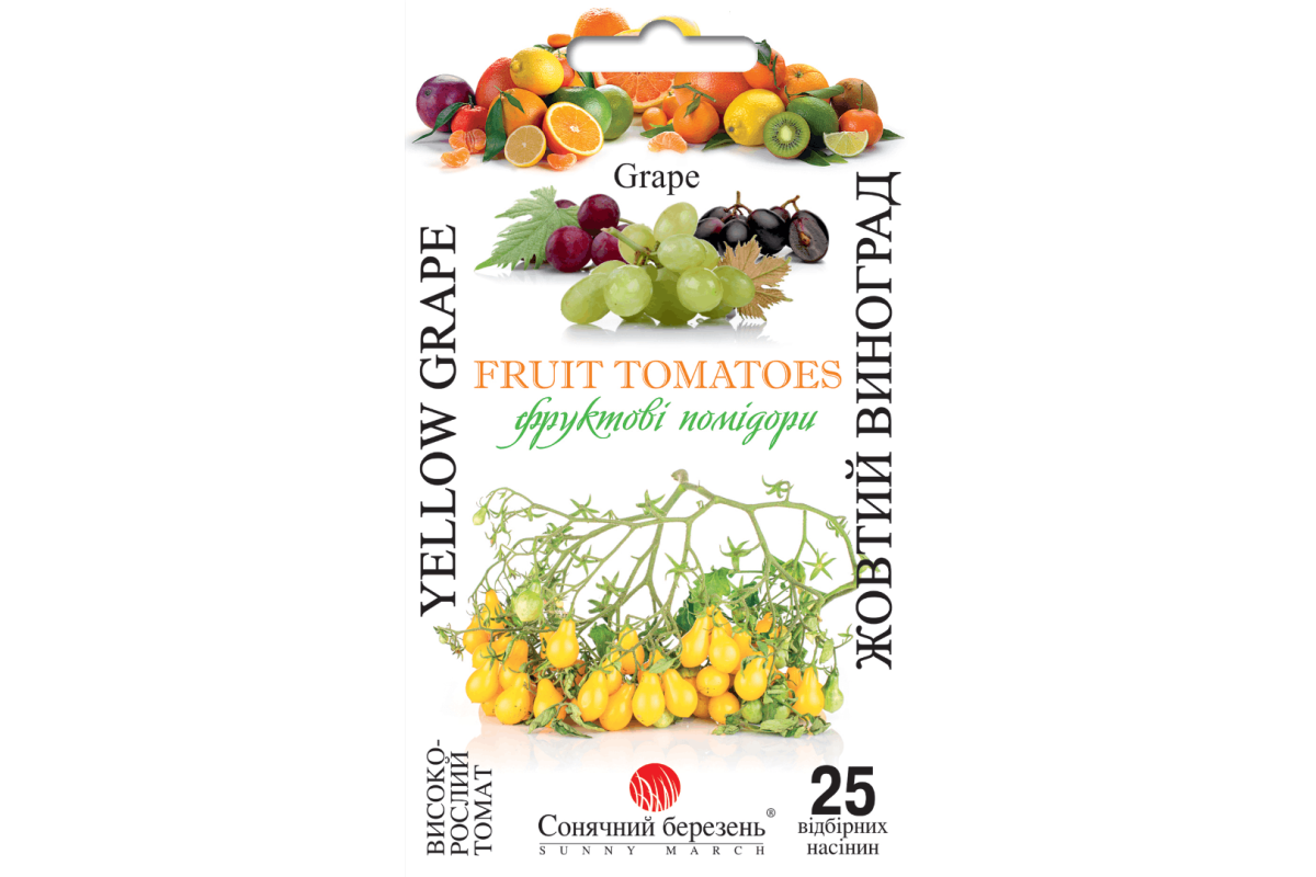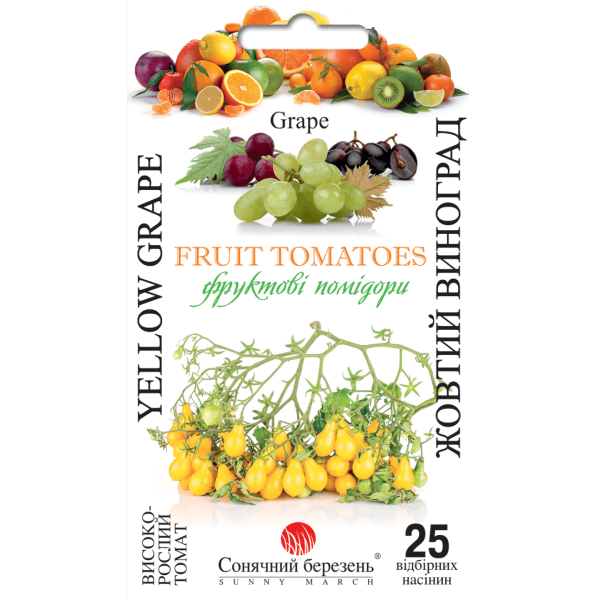 Желтый виноград – ранний индетерминантный сорт помидоров черри. Желтые томаты менее кислые и имеют природный вкус по сравнению с красными помидорами. Эти желтые «виноградинки» весом 10-15 граммов не только вкусны, но и богаты клетчаткой, витамином С и мощными антиоксидантами, что делает их питательным дополнением к вашим блюдам. Независимо от того, готовите ли вы свежие салаты, соусы или просто перекусываете, желтые виноградные помидоры добавят вкус и цвет вашей тарелке!