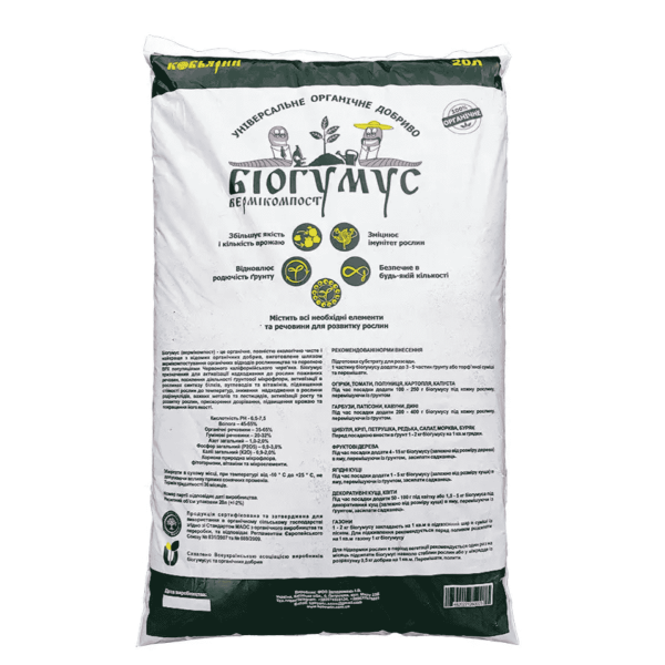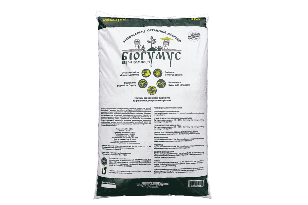 Біогумус (вермікомплект) — це органічне, повністю екологічно чисте та найкраще з відомих добрив, вироблене способом перероблення органічних відходів рослинності та тваринництва населеннями дощового хробака.