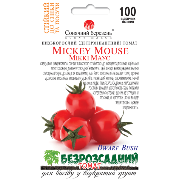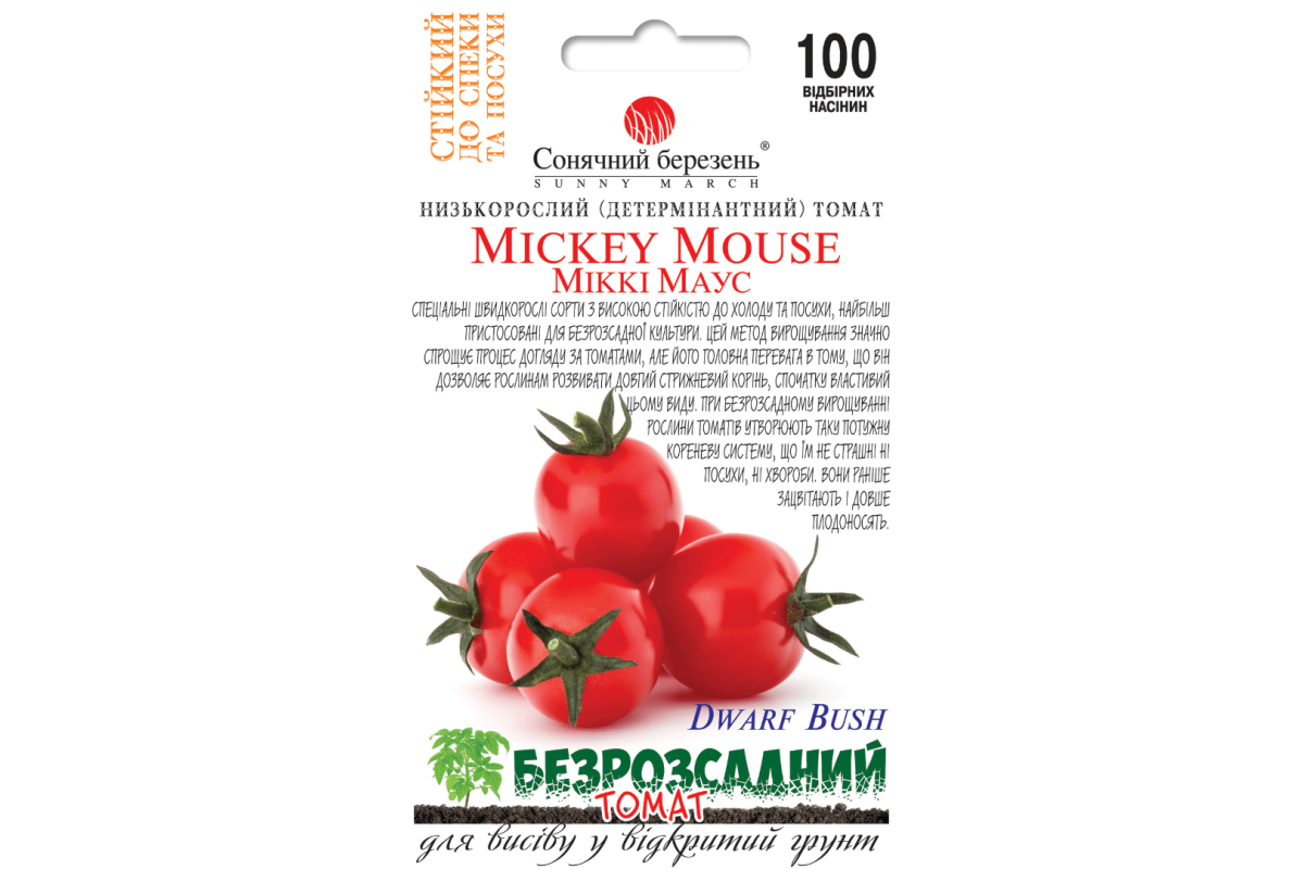 Рослини цього сорту фантастично продуктивні та енергійні, що дивно для такого компактного томату. Кущ невисокий, але потужний, висотою близько 50 см, і може зрости до метра у сприятливих умовах. Плоди трохи овальної форми, майже круглі, яскраво-червоного кольору, гладкі, блискучі, масою від 20 до 60 грамів, зібрані в кисті по 6-8 штук. У них малонасіннєва, м'ясиста, але приємно соковита м'якоть із цікавим, дуже солодким м'яким смаком. Цей сорт хороший для соусів, цільноплідного консервування та засолювання, завдяки тонкій, але міцній шкірці. Середньоранній сорт, близько 110 днів від сходів, що добре переносить літню спеку в умовах України, легко наливає численні дрібні плоди, надійно захищені пишним листям.