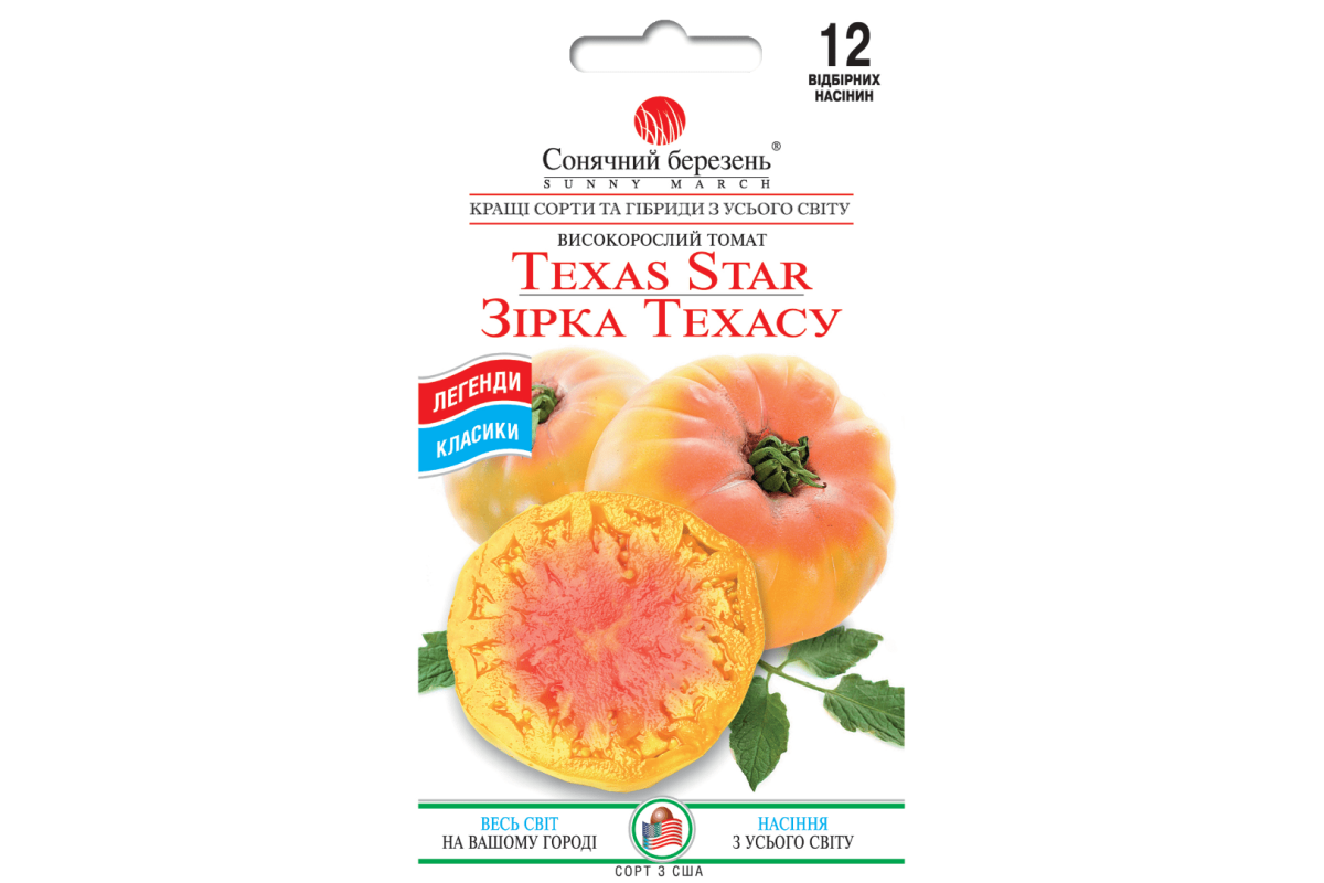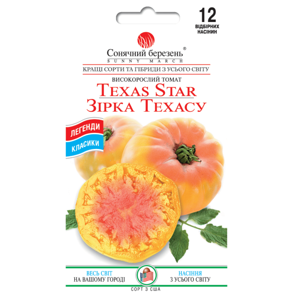 Сімейна реліквія, гордість штату Техас, вперше представлена у 1980-х роках. Великі, індетермінантні рослини висотою близько 1,8 м із звичайним листям дають багато дуже великих, вагою 1-2 фунти (400-800 г) двоколірних томатів, жовтих з червоними смужками та мармуровістю всередині та зовні, і, як правило, червоною зіркою на нижній конус. Ці біфштексні помідори округлі і сплюснуті, у верхній частині глибокі канавки, з яких починається жолоби, що звисають, значно збільшують плід.